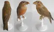 Bec-croisé des sapins (Loxia curvirostra) - Origine : France, collection particulière - Spécimen daté 1880/1900 env. - Perchoir en bois tourné d'origine - Longueur de l'oiseau : 14 cm. Red Crossbill (Loxia curvirostra) - Origin : France, private collection - Dated circa 1880/1900 - Original hand turned wooden perch - Lenght of the bird : 14 cms