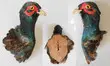 Tête de faisan versicolore (Phasianus versicolor) sur écusson en chêne - Origine : France - Collection particulière , daté 1980 env. - Green Pheasant head (Phasianus versicolor) on oak wooden base - Origin : France - Private collection - Dated circa 1980.